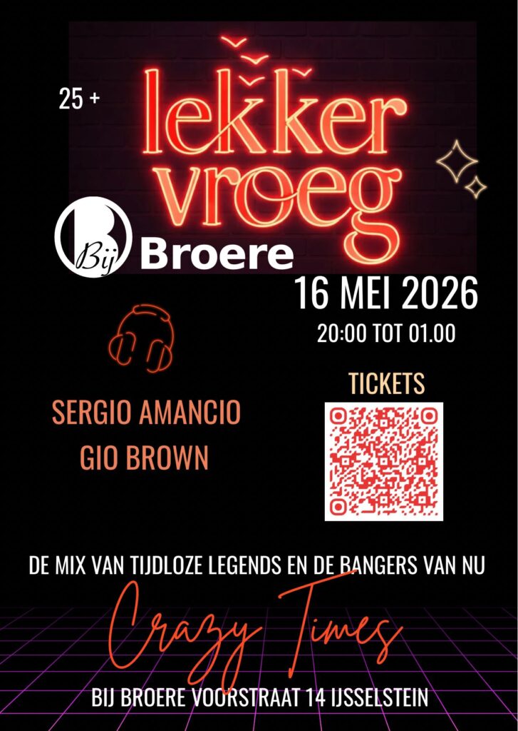 Lekker Vroeg feest van 20.00u tot 01.00u met heerlijke meezingers en Guilty
